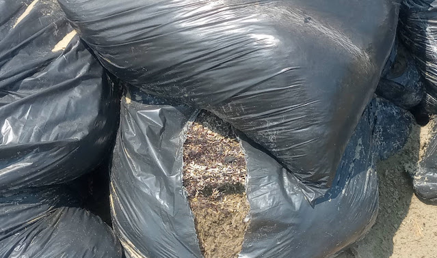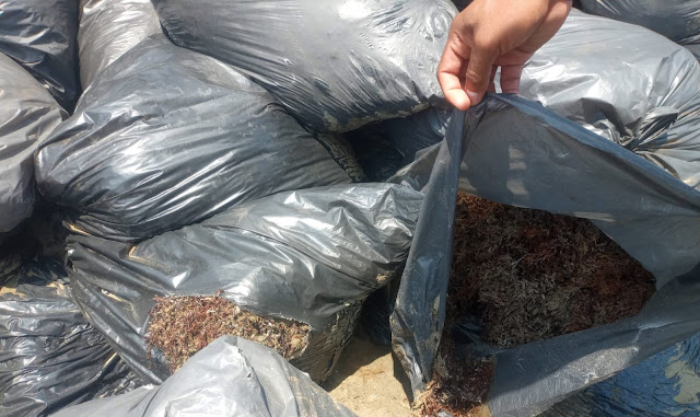 Tras abrir varias de las bolsas para revisar su contenido, se determinó que el material corresponde a sargazo recolectado durante labores de limpieza, descartando que se trate de hidrocarburos o chapopote.