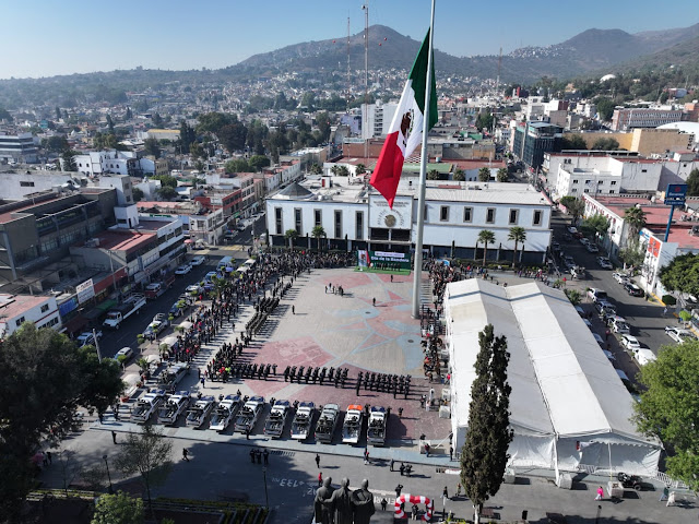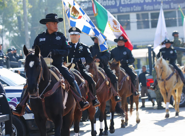 Como parte del acto conmemorativo, la Policía Montada de la Dirección de Seguridad Ciudadana realizó un desfile ecuestre en el que se mostraron réplicas de distintos estandartes históricos: el de Hidalgo con la Virgen de Guadalupe, la bandera de Morelos adoptada en 1812, la de las Tres Garantías de 1821, la del Batallón de Toluca y la de la Fuerza Aérea Expedicionaria Mexicana que participó en la Segunda Guerra Mundial.La ceremonia concluyó con el compromiso, bajo el lábaro patrio, de defender la soberanía nacional y construir un país en unidad.